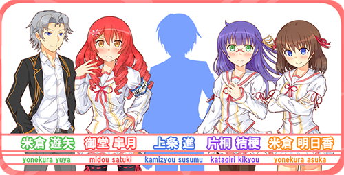 平凡な日常を送っている主人公、上条進が風紀委員長を務める幼馴染の御堂皐月や図書委員を務める後輩の片桐桔梗と繰り広げるちょっぴり切ない三角関係?な恋愛ノベルスゲームです。親友の米倉遊矢やその妹の米倉明日香を交え、登場人物がフルボイスでストーリーを展開していきます。 |