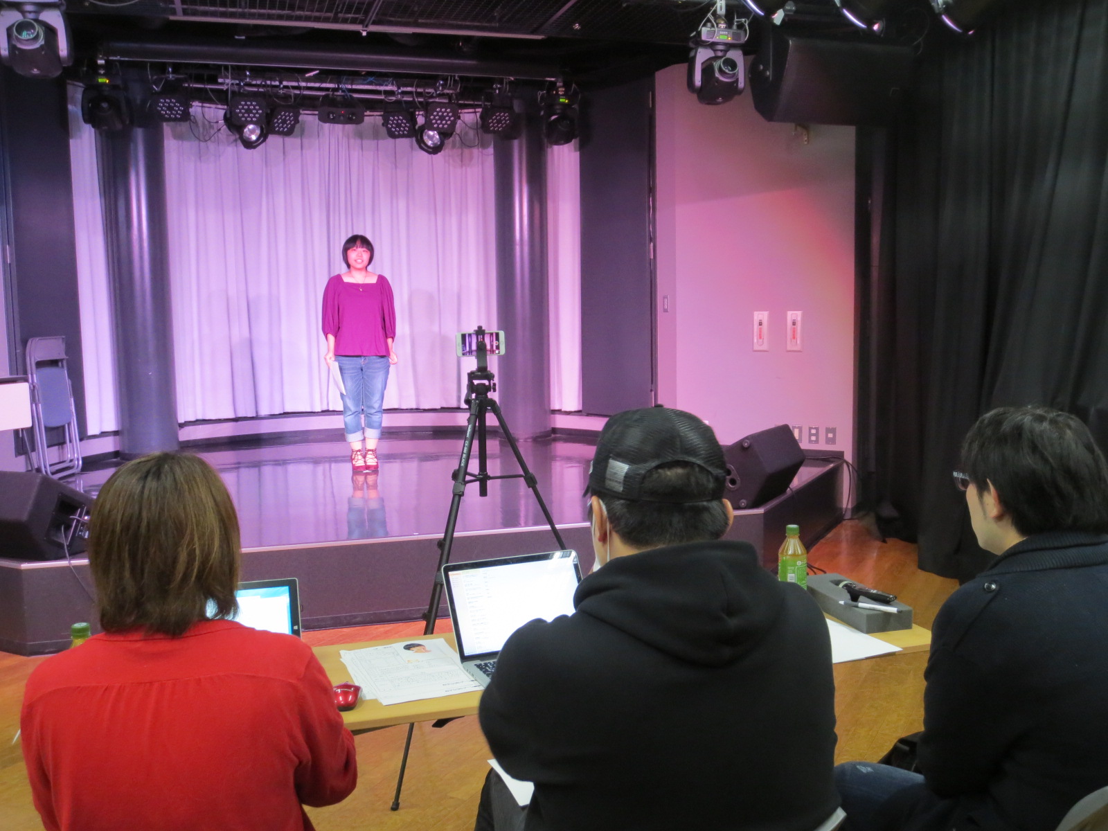 自己PR、朗読課題、歌唱パフォーマンスをしました。