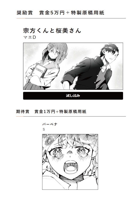 コミックメテオ・コミックポラリス開催の新人賞『彗星賞』にて