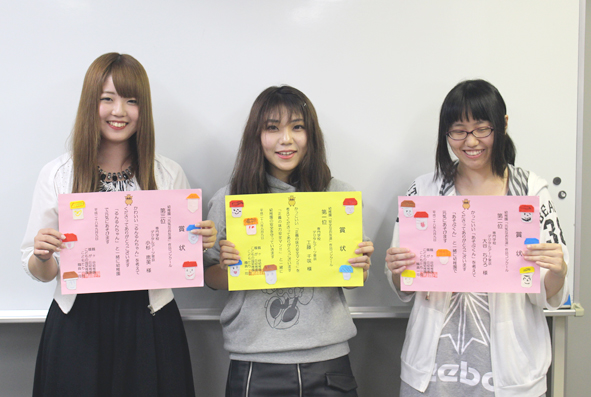 みんなの前で表彰された学生はとても照れくさそうでしたが