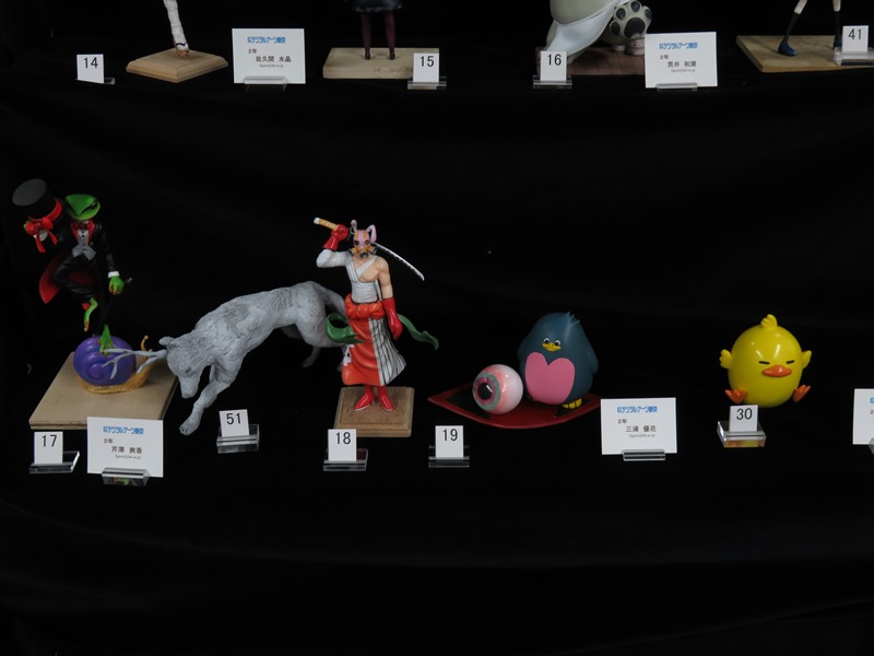 フィギュア造形学科では501教室で作品展示、502教室でレリーフチョコA液B液ジュースフィギュア販売を行っていました。