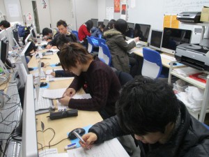 いつもはイラストを描いている学生も今日ばかりはそうはいきません!shock.gif