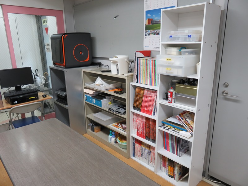 まずは入り口から。左側はパソコン+新兵器3Dプリンターゾーン。