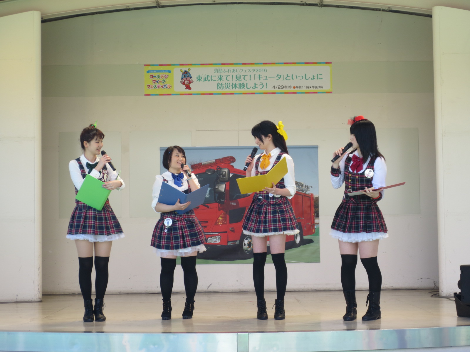 ふれあいフェスタ無事終了! 2016年04月29日 本日4月29日に東武百貨店池袋店で開催された 「消防ふれあいフェスタ2016」におきまして 本校のアイドルグループ「西池学園NIG」が イベントのMC・ライブを担当いたしました。 強い風の中に関わらず、会場にはたくさんの皆さまにお越しいただき ライブでは温かい拍手をありがとうございました。 また、今回のイベントにあたり池袋消防署の皆さま、 東武百貨店池袋店の皆さま、大変お世話になりました。 ありがとうございました 今後ますます活躍できるように皆さま応援のほど、よろしくお願いいたします