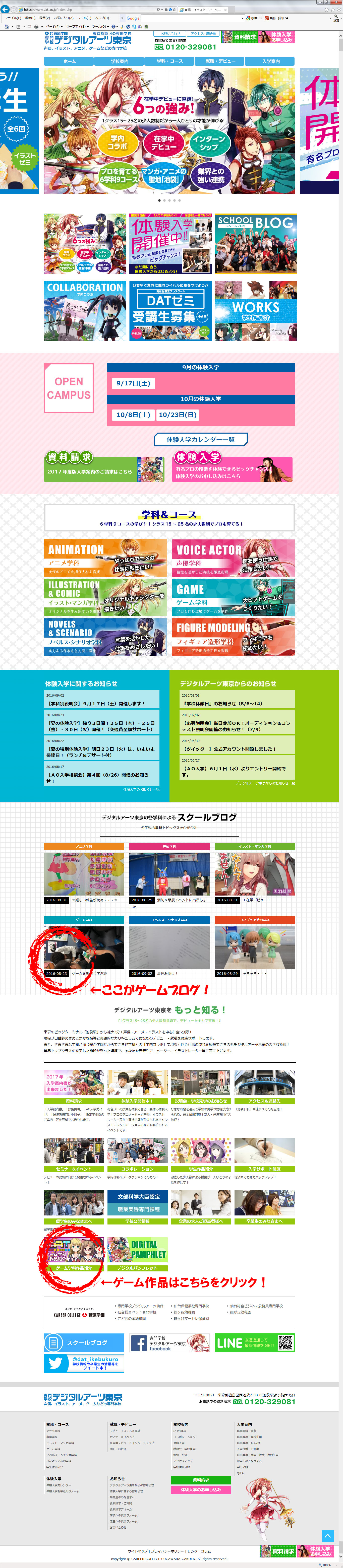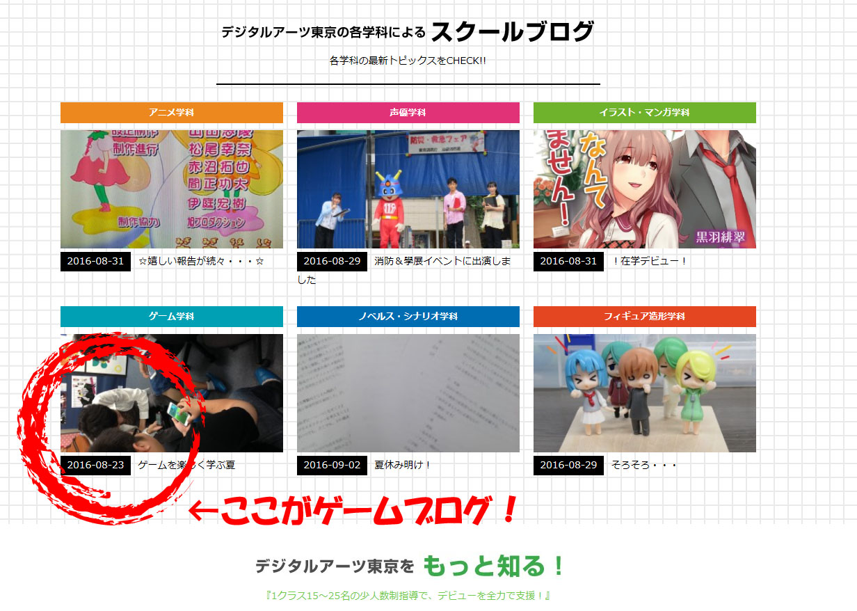 ゲーム学科のブログのさらに下にあります。ブログは、