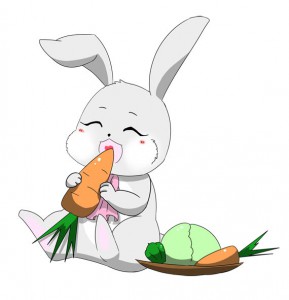 可愛らしいうさぎと「野菜も食べよう!」と言う