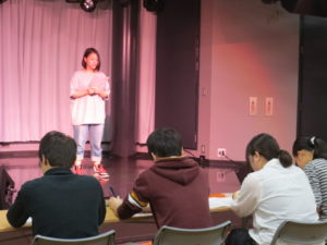 キャストへ応募した声優学科の学生は、一人ずつステージに立ち