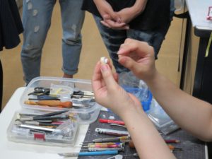 フィギュア造形学科 エポパテ授業 2017年07月06日 どうも、大賀です・`ω´・)9 本日はポリパテ授業に続きエポパテ授業の様子を見てみましょう。 7月に入って完成に近づいてきたので分割・嵌合(かんごう)の実演最中でした。 組み立て後は隠れてしまう部分ではありますが完成に影響してくるので気の抜けない工程です。 これを駆使して完成目指して頑張ろう!(ง •̀ω•́)ง 今週末8日(土)は体験入学。 「お題に沿ってレリーフフィギュアをつくろう!」でスカルピーを体験できる回です。 スカルピーを触ったことがない方は要チェックですぞー!(`・ω・´)9