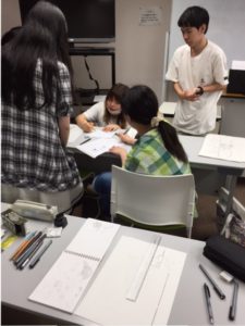 展示用イラストのテーマをグループに分かれ細かい設定など決めています