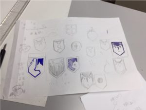 見本のプリントを参考に、必要な要素を決め自分のアイデアを入れながら紹介ネームを描いてみます。