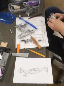 1年生のうち数名は試験を見越して放課後よく残って学内コラボ作品を進めています。