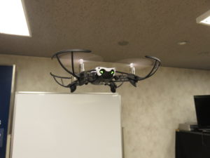特別体験入学の午後の授業でドローンを飛ばしています。