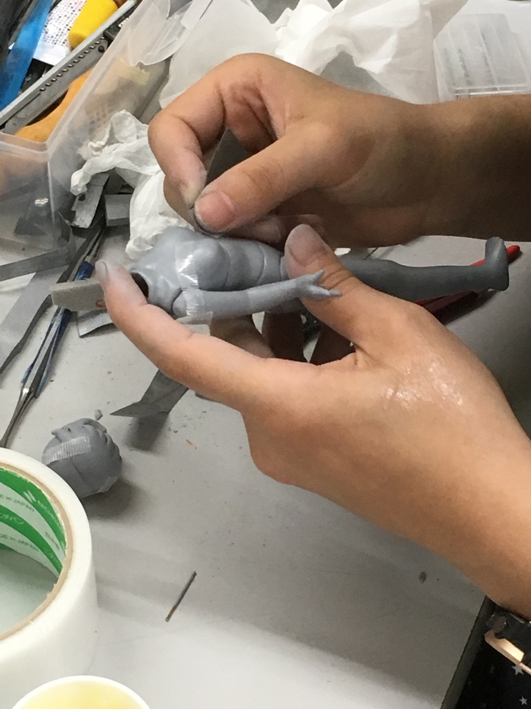 シリコン型にレジンキャストを注いで複製するところから始め、塗装まで体験できます。