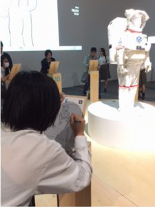 普段マンガ作品は意識して見ている学生も、デザインマインドといった広い視野での展覧会にとっても興味をもって、楽しみながら見学したり、体験していました!