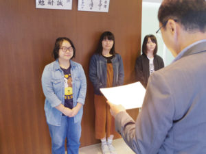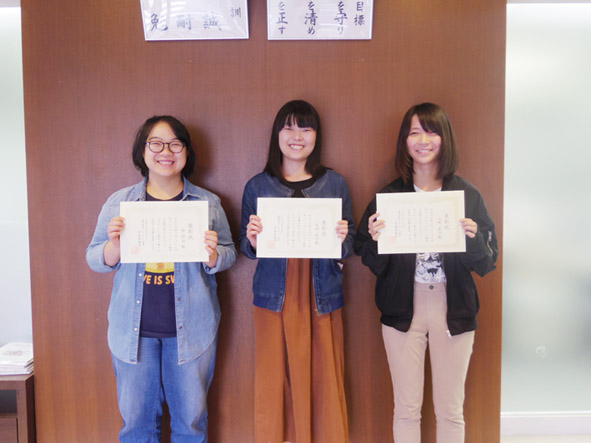 第5回イラスト学内コンテスト表彰式! 2018年10月17日 イラスト系学科担当のみいたです!!(๑´⍢`๑) 10月の頭に第5回イラスト学内コンテストの表彰式が行われました!(*゚▽゚ノノ゙☆パチパチ 受賞者はアニメ学科の蔡さん!イラスト系学科の永岡さん!同じくイラスト系学科の山崎さん!3人とも緊張した面持ちでしたが表彰状を貰うと、ともて嬉しそうにしていました!(〃゚д゚〃) 3人の作品が気になる方は体験入学に遊びに来てくれれば見ることができます!!(゚∇^d)歴代のイラスト学内コンテストの優秀作品を飾っていますので、「先輩の作品見てみたいな」(´-`)なんて方は、ぜひ体験入学に遊びに来てください!乁( ˙ω˙ 乁)