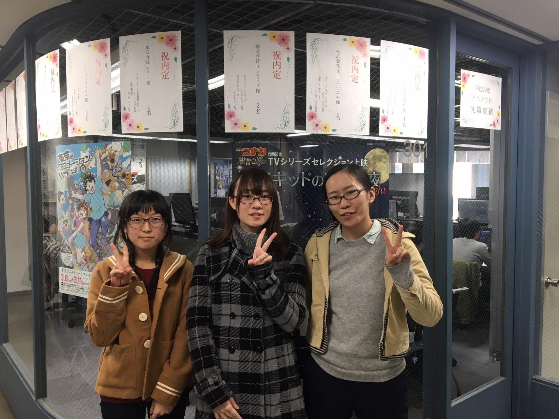 本日、アニメ学科の卒業生でサンライズのアニメーター3名が遊びに来てくれました。
