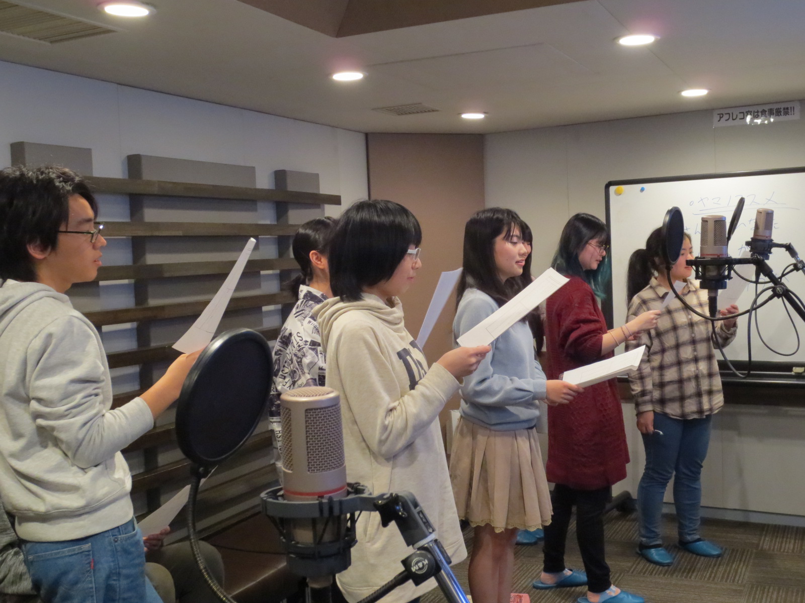 与えられたアフレコ課題をマイク前で実際に収録しながら
