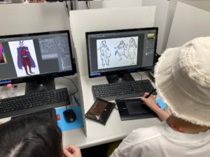 ゲームCGキャラクターの学生は、試遊版で使う3Dや2Dのキャラクターや背景などを作成。すでに受け渡し完了しているチームもあれば、まだまだ作成中のチームも(‘ω’)