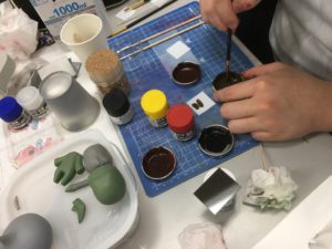 熱を加えて固まる粘土(グレイスカルピー)を使いあらかじめ用意しているヘッド素体にスカルピーを盛り付けて、キャラクターの顔にチャレンジ!あなただけのオリジナルヘッドフィギュアを作って持ち帰えりましょう!