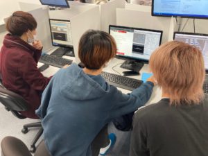 また、ゲームの紹介ムービーをつくりたいという学生が出てきたり、個人制作も頑張って行っているものもいてグループ制作はクラスに良いムードを与えています(^^)/