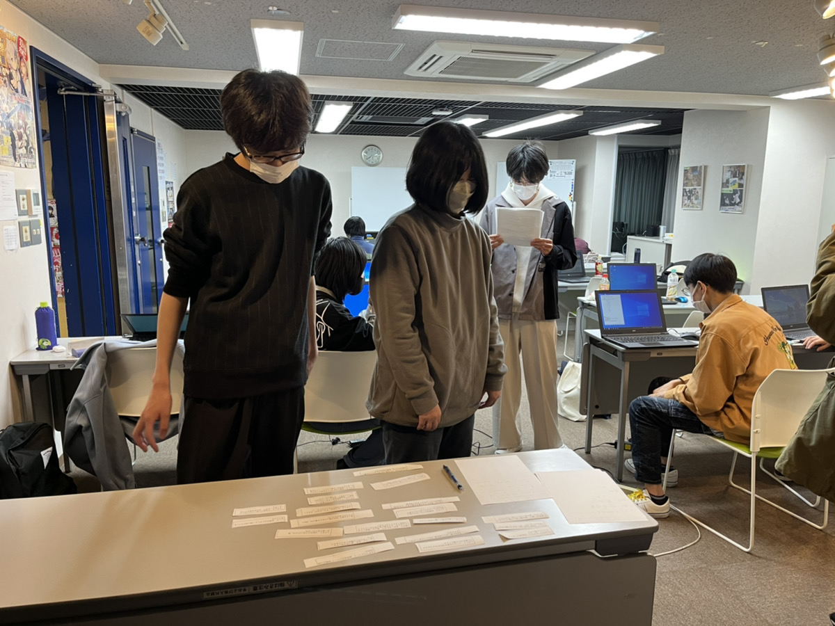 おのおのがアイディアを出し合って、協力して一つのゲームを制作中です。