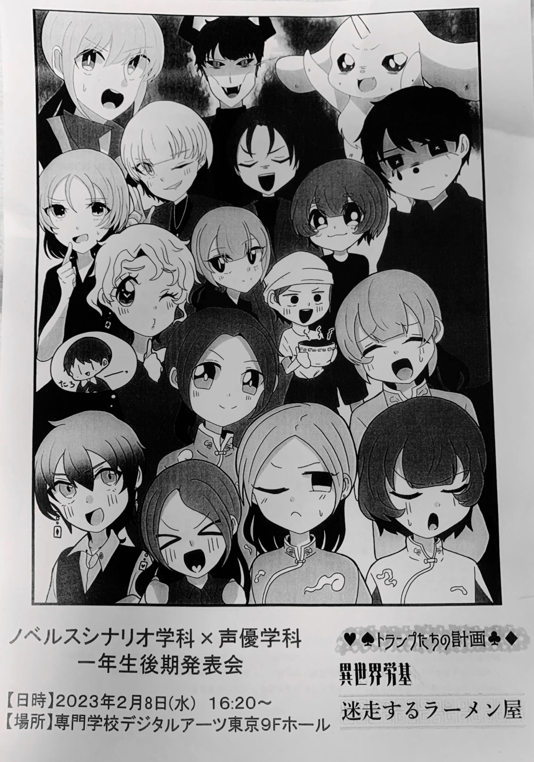 こちらの発表会、実はノベルス・シナリオ学科とコラボレーションしております