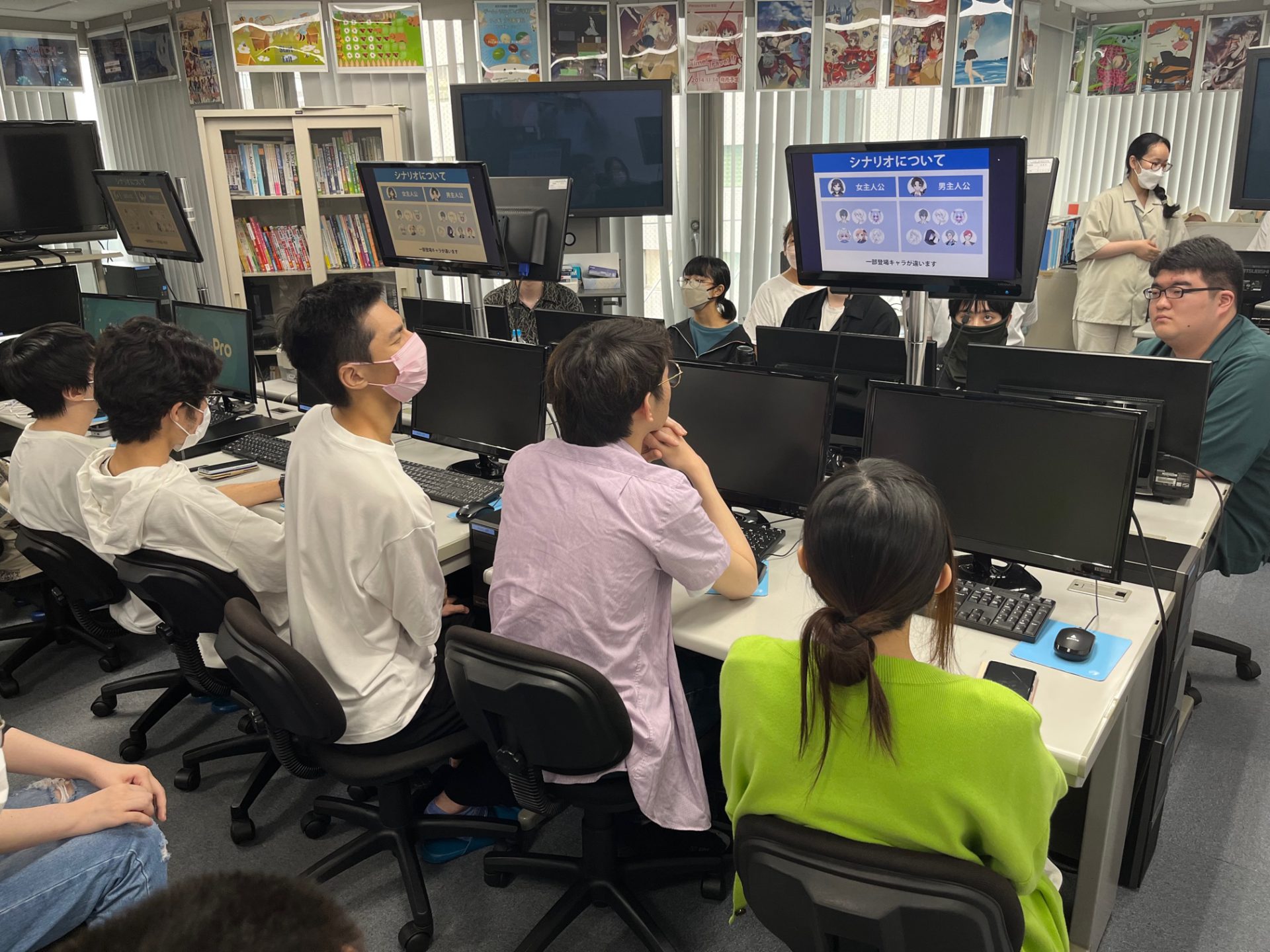 また、ゲームプログラムコースのチームは、企画内容の説明の中で面白さのポイントを実際に作成した試遊版のゲームをプレイすることで伝えます。