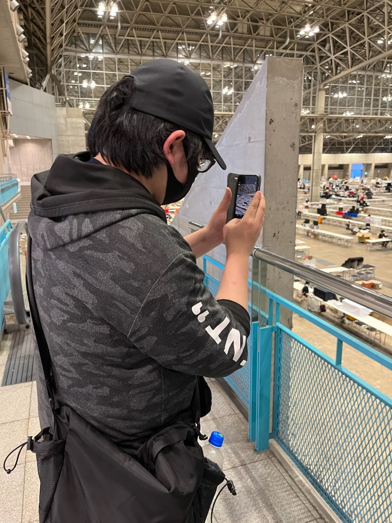 初めてのワンフェス会場を、設営前に写真を撮っている一年生