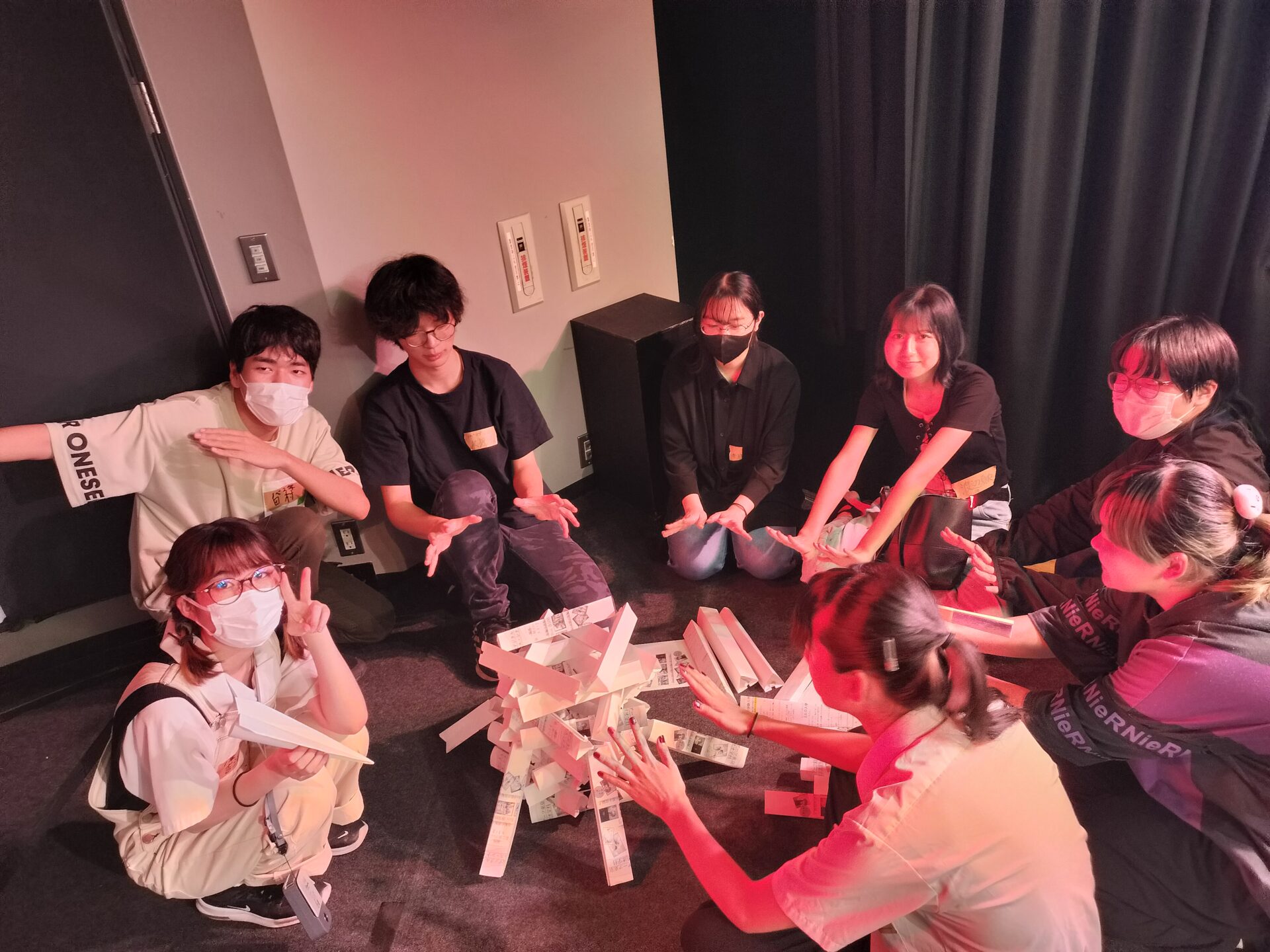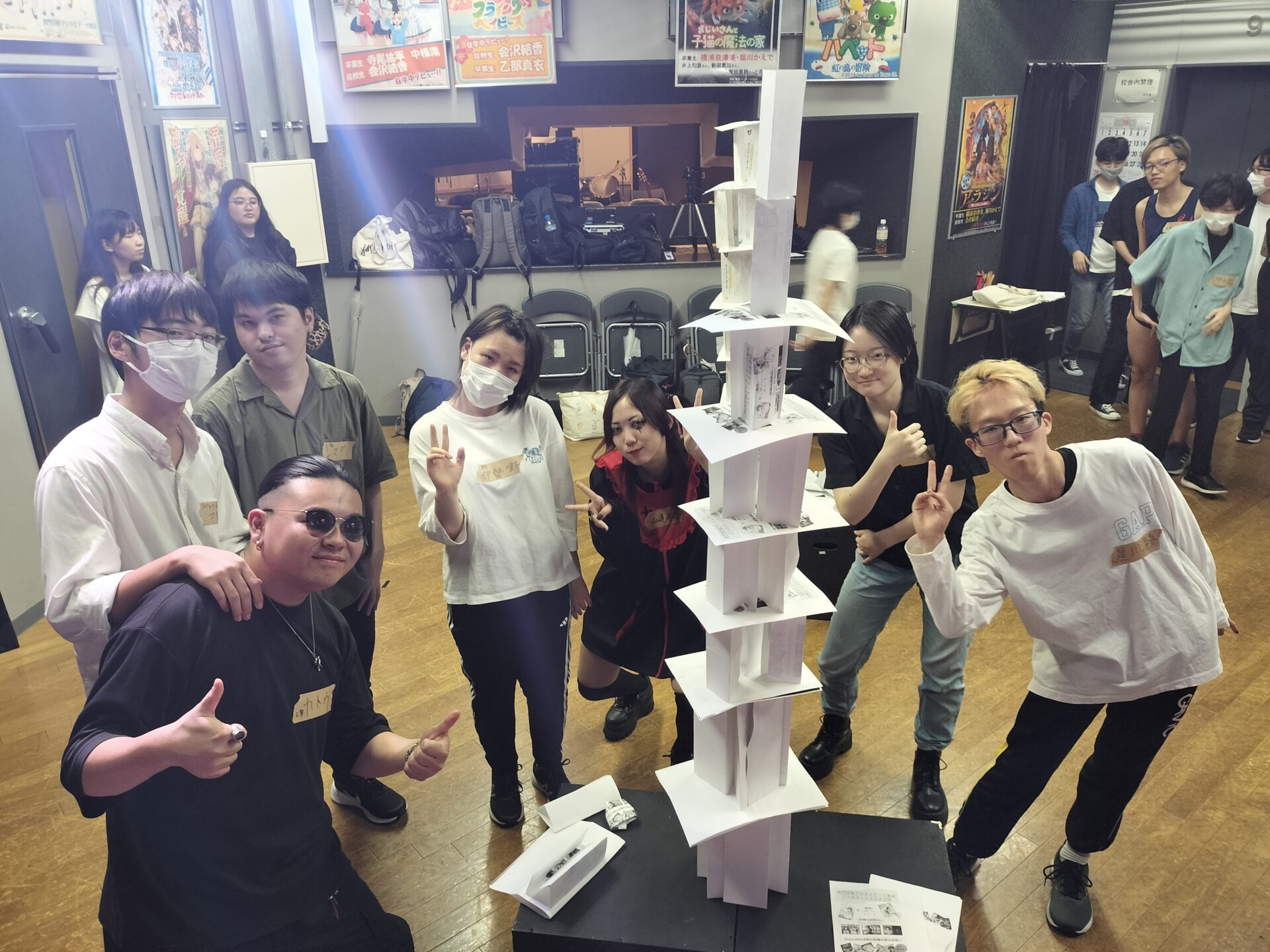 ミニゲーム「いかに紙を高く積めるか!」をおこないました