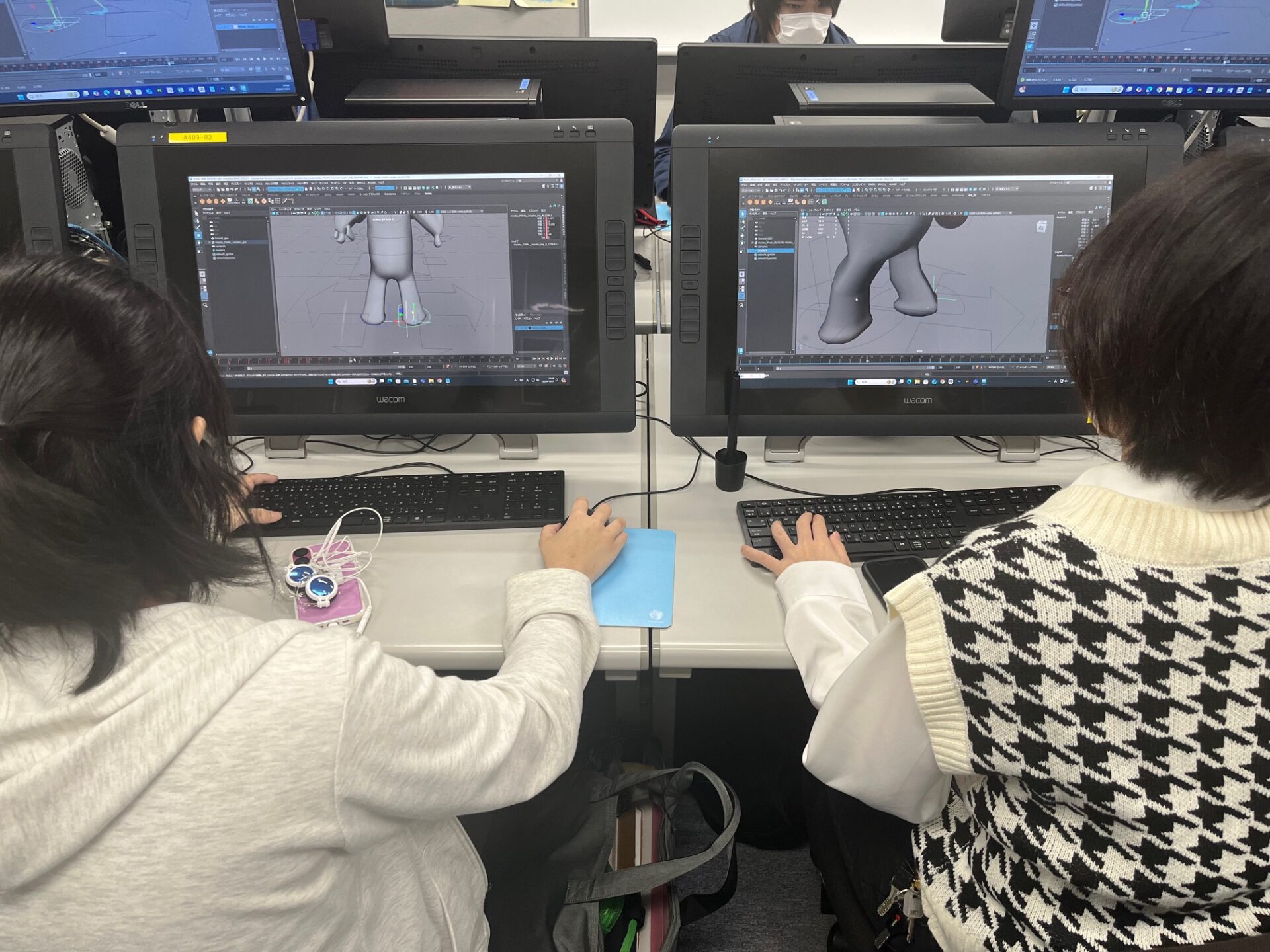 最初は小物のモデリングから入って室内空間や建物などを制作します。そしてキャラクターのモデリングに入り、そのキャラクターにリギング(骨組み)してアニメーションさせるまで学びます。