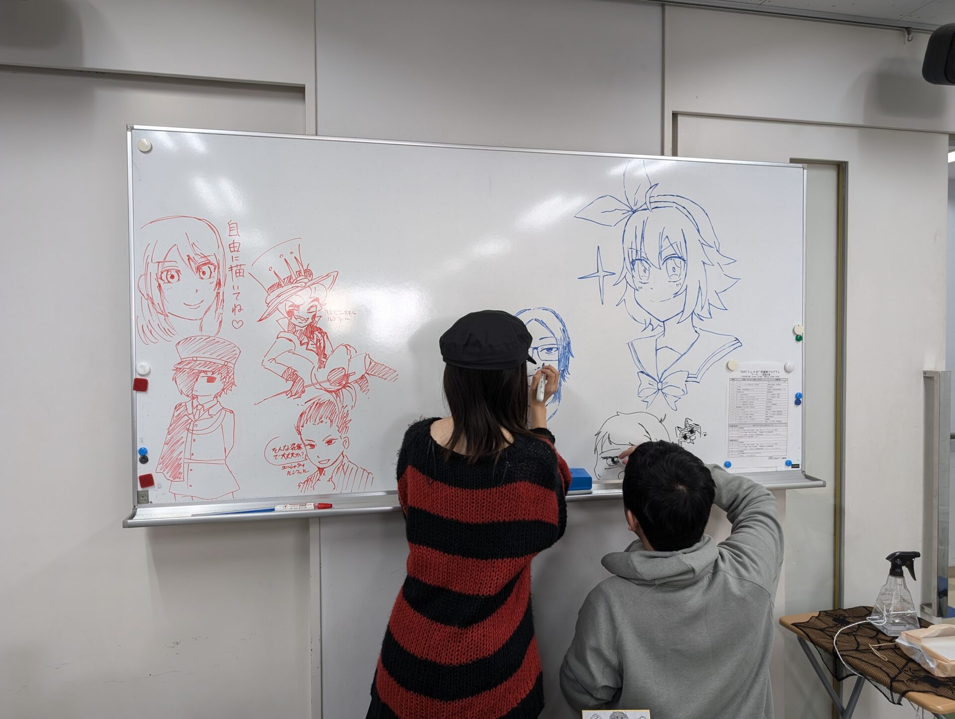 実践的にプロの仕事フローや実例を参考にしながら体験し、描いたイラストは缶バッジや