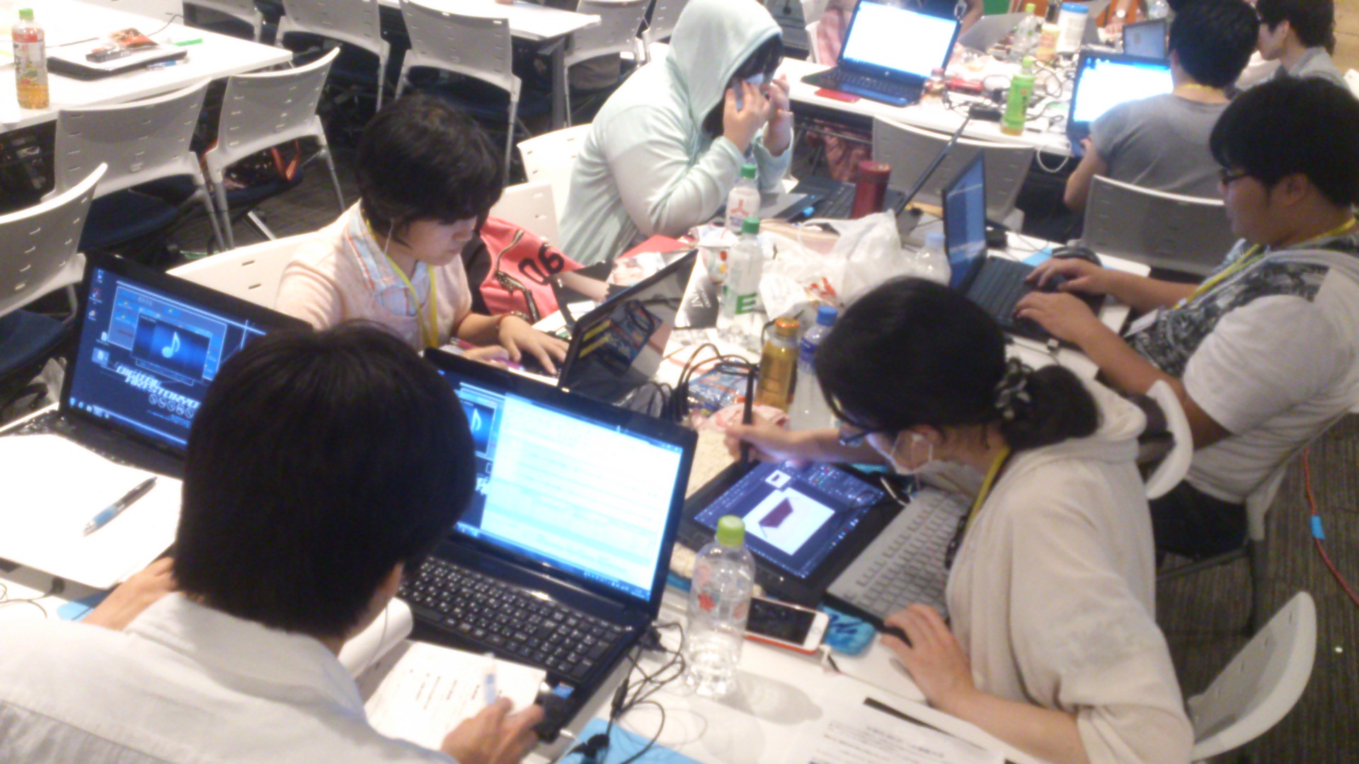 ゲーム学科の体験授業では、授業内や校舎見学時に