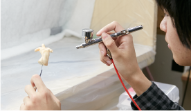 フィギュアの型取や複製に関して失敗の少ない複製法を実習を通して学びます。またハンドピースを使い(エアーブラシ技法)フィギュア等に塗装を施し、実践的な塗装技術を学んでいきます。