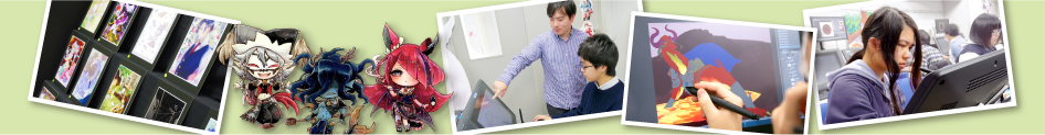 ゲームやアニメ、企業や商品広告のキャラクター等を生み出したい人のための「キャラクターデザイン専攻」。