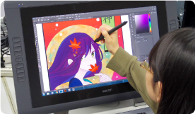 “Photoshop”“Illustrator”等のツールで、実践に即した作品制作を行い、イラスト業務の流れや技術を学びます。