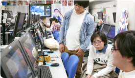 学内外イベント準備及び学内コラボ・企業依頼案件・作品公募等のフォローアップをします。また、持ち込みや投稿のアドバイス、就職活動に関わるマナー指導、一般教養対策も行います。