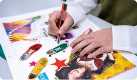 グッズデザイン等の幅広い知識・技術を学びます。現役で活躍するプロのデザイナーの講師による、