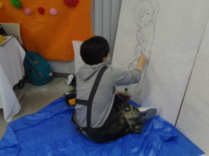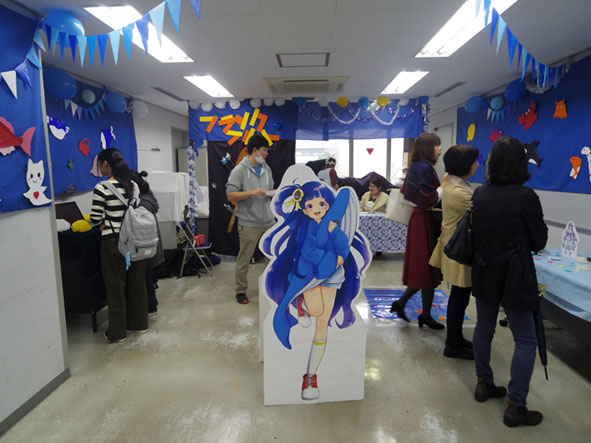 今回、学園祭で飾った等身大キャラクターなども展示していますので