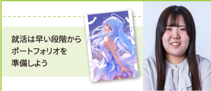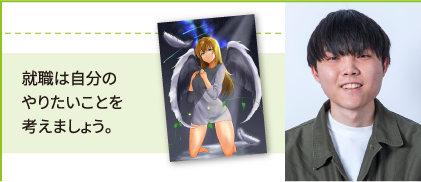 今後はイラストだけでなく、学校で学んだテクニックを活用し、デザイナーとしても活躍できるよう努力します。