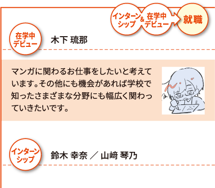 以下の学科名をクリックすると、各学科のデビュー・インターン実績をご覧いただけます。