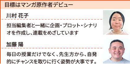 シナリオ制作会社「株式会社エッジワークス」との協力体制から、現場実習や在学中デビューのチャンスを強化中。業界への最短ルートを提供しています。