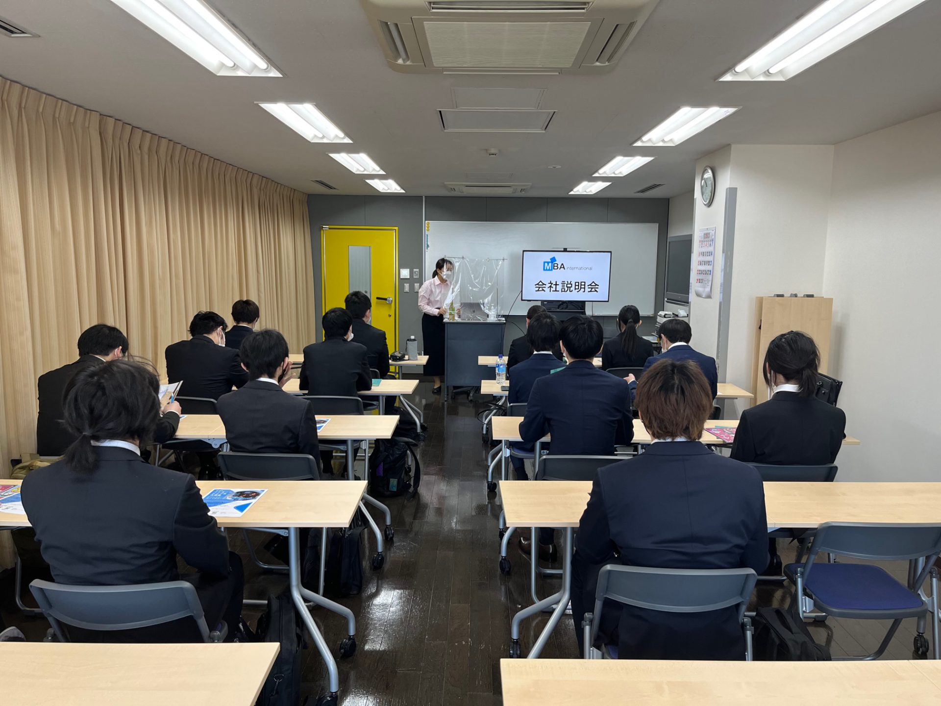 本日、ゲームやIT業界のエンジニアを希望するゲームプログラムコースの学生に対し、エムビーエーインターナショナル株式会社様より会社説明を行っていただきました。