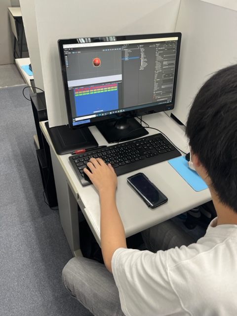 今日のゲームプログラム1年生の授業では、夏休みの課題の「ゲーム制作」について提出と今後の制作スケジュールについて説明がありました。夏休み前までの授業で制作していたプログラムに変更を加える形で提出している学生から新たに新しくつくってきた学生までいろいろ(^^♪