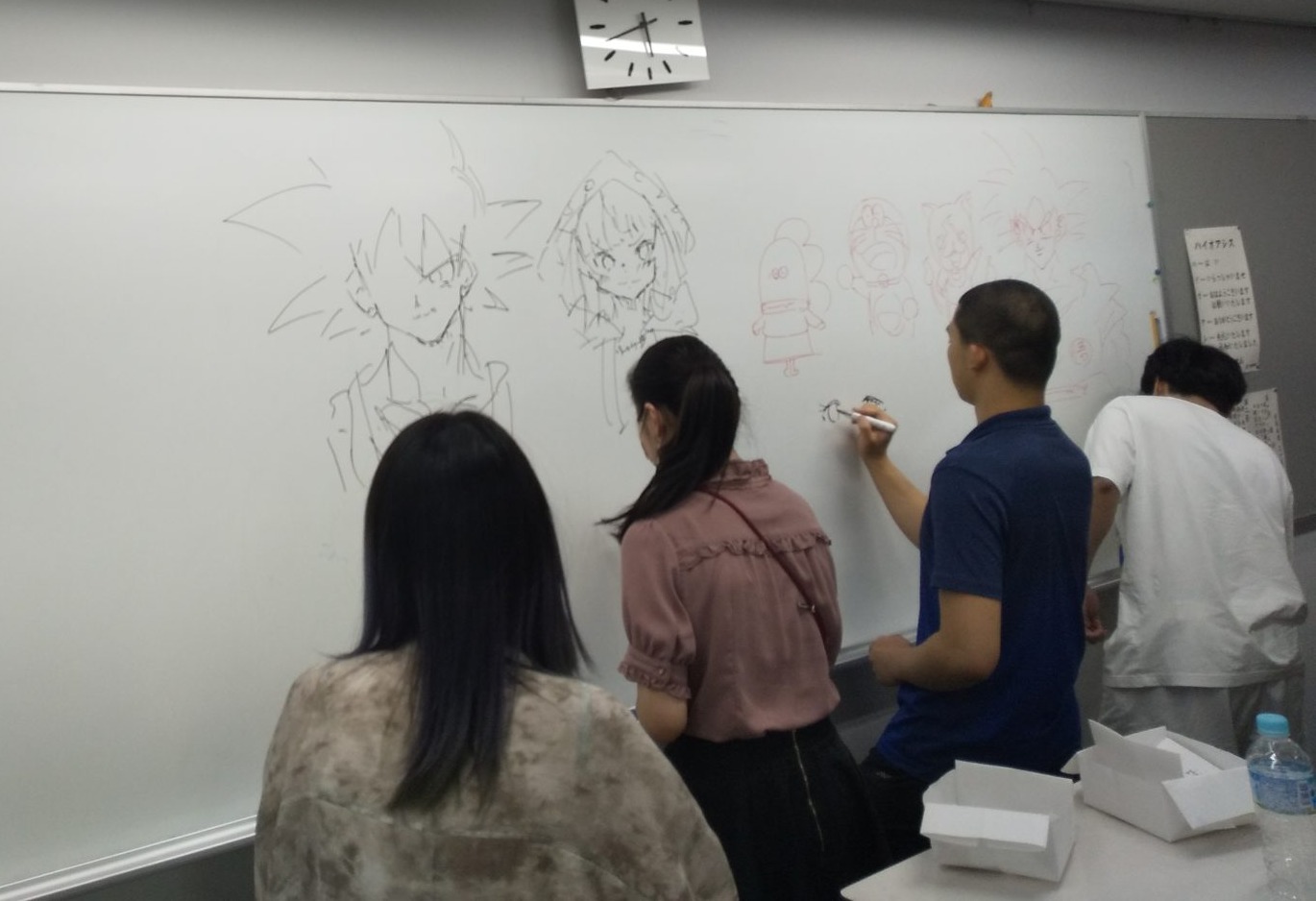 6~7人のグループに分かれ絵しり取りなど、イラストをボードに描いて楽しむゲームで盛り上がりました。