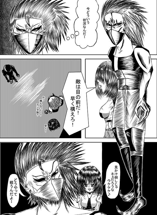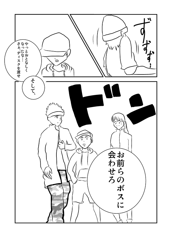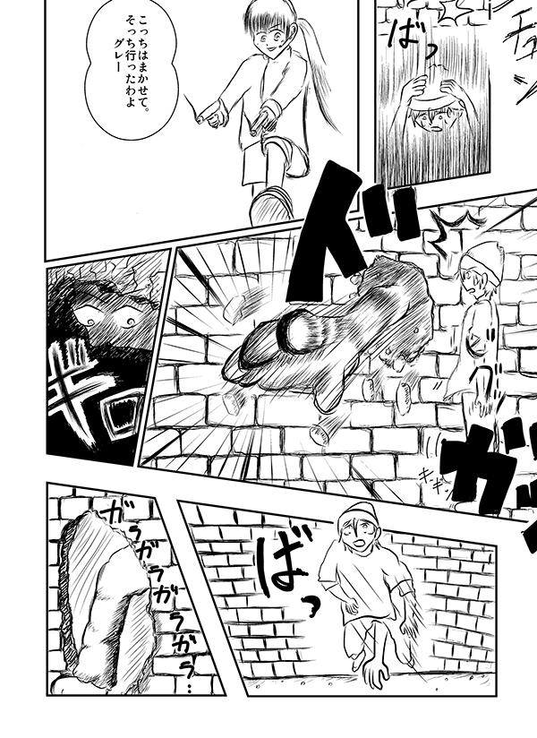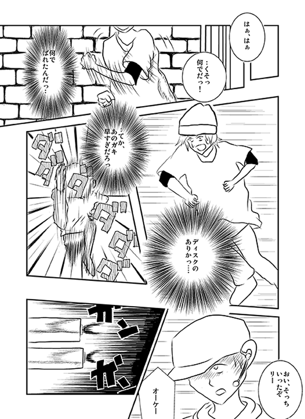 ある廃れた町の路地裏でのアクションです。とにかく動きのあるアクションを描きたくて作りました。これといって後も先も考えてないものなので前後の話はご想像にお任せします。拙い漫画ですが一生懸命描きました、最後まで読んで頂いたら幸いです。
