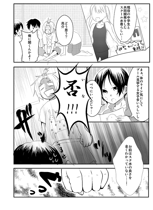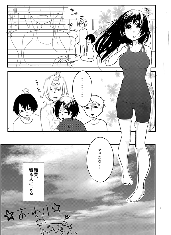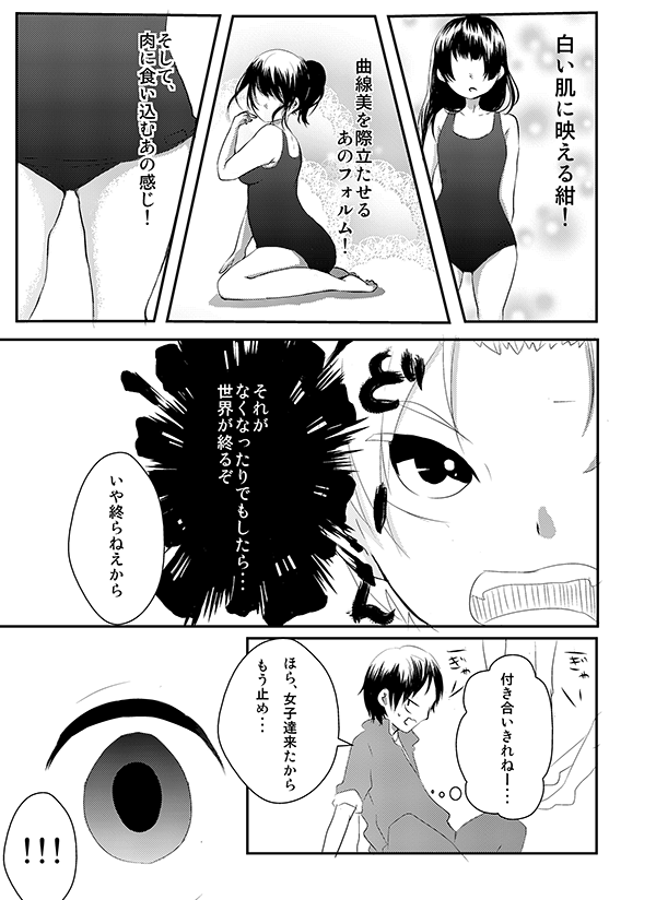 はじめまして、絵兎(えと)と申します。紅茶と可愛い女の子を生きる原動力として、毎日一生懸命生きています。この漫画はスク水についてのお話です。スク水と言えば、最近色々なタイプのが出ててすごいなーっと、時代の流れを感じます。ちなみに私は肩ひもが白でスカートのタイプが好きです。