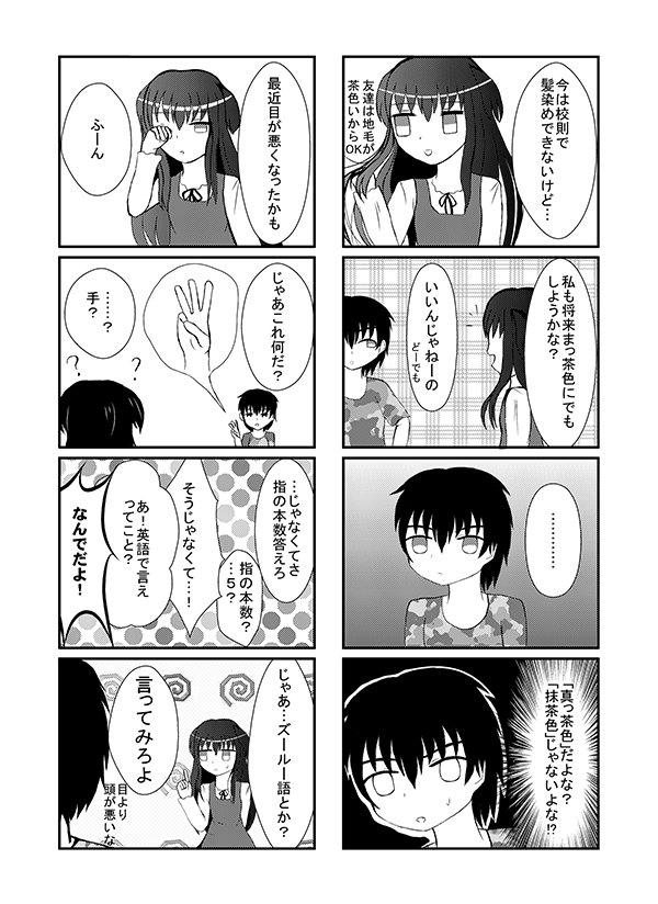 姉弟が喋ってるだけの四コマ漫画です。ズールー語は南アフリカ共和国の公用語です。