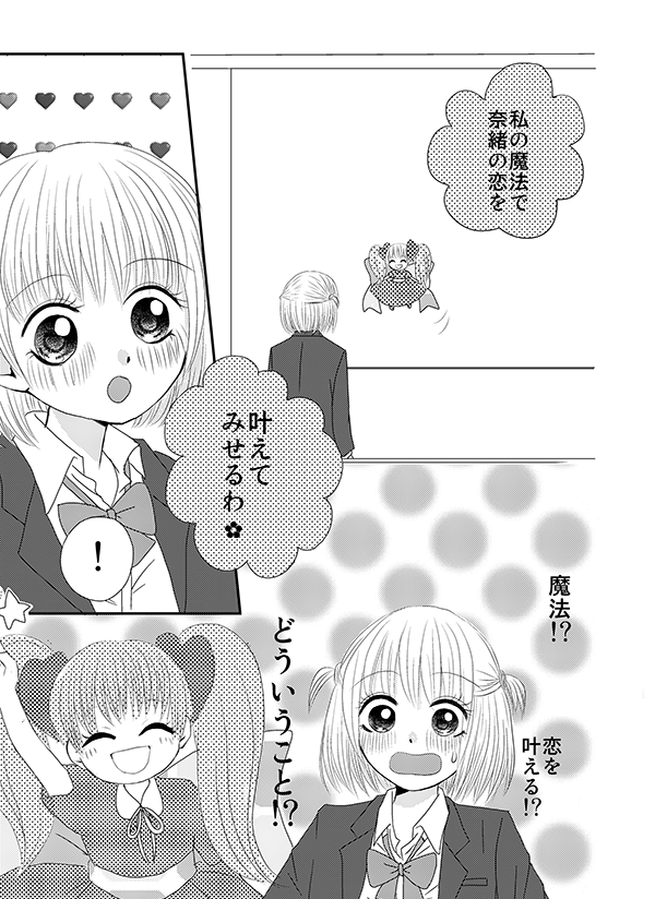 小さい頃は、魔法や不思議な力が恋のお手伝いをしてくれる、という設定の少女漫画が大好きでした。今の小さい子たちもきっと大好きな設定だと思うので、いつかこんなお話が描けたらいいなと思います^^